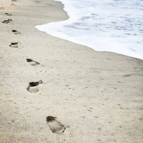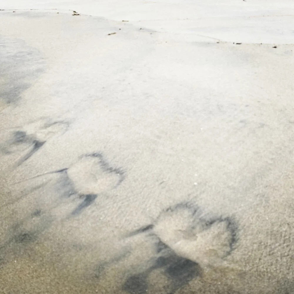 On my way back down the beach, the impressions of the earlier footsteps had faded and looked more like hearts.